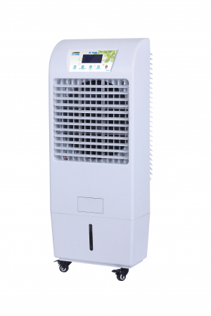 水の気化熱で、外気温からー5度前後の冷風を出す商品。